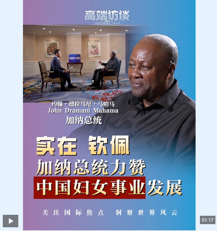 近日,加纳总统马哈马接受央视《高端访谈》节目专访,盛赞中国女性的职业成就“真诚、值得称赞、值得骄傲”。